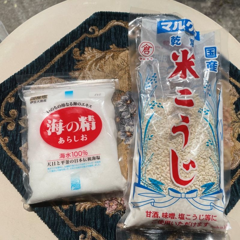 海の精(伊豆大島の海水から採取)・ 乾燥米こうじ、この二つを使って、今回始めて塩こうじを作りました。今まではコンソメの代わりになる玉ネギこうじが好きで作ってたんだけど、今回はシンプルな塩こうじに初挑戦!!混ぜて一日一回まぜるだけですが・・・(≧∇≦)ノ 1週間経過したので、もうすぐ出来上がりです。ミキサーにかけて滑らかにしようと思います。
